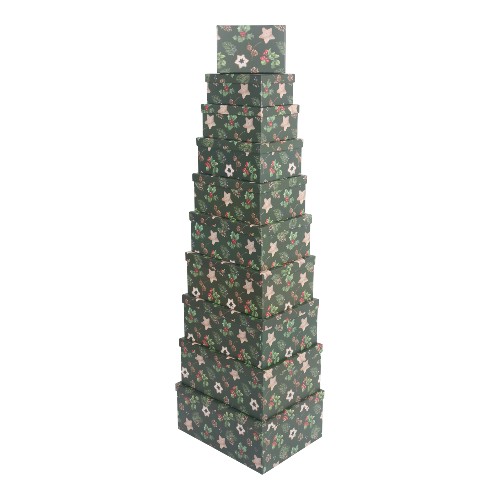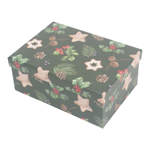 Коробка/набор НГ 604-2663 из 10 шт. Прямоугольник 34х26х15,3см. "Звезды,ель на зеленом". 6 т.м
