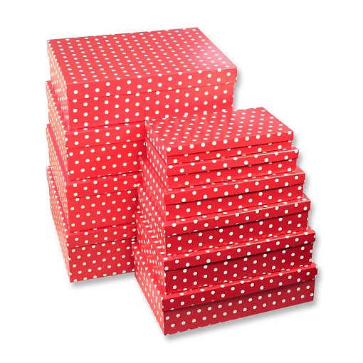 Набор коробок № 72 Прямоугольные 10 шт. Горох красный 36,5см*26,5см*12см