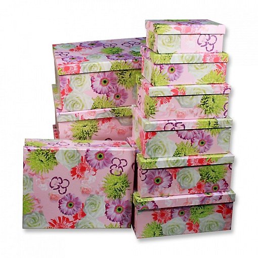 Коробка/набор из 10 шт. Прямоугольник "Хризантемы" 37*29*16 4 т.м.