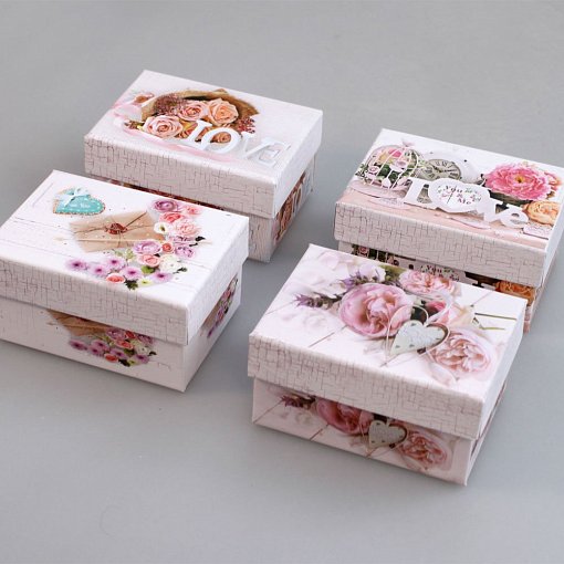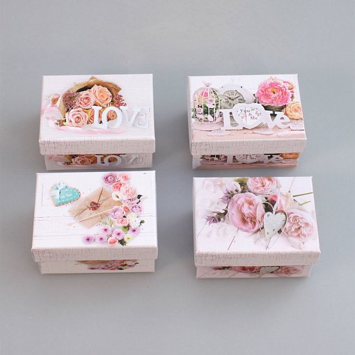 В упаковке 12 коробок одного размера 4 различных рисунков.