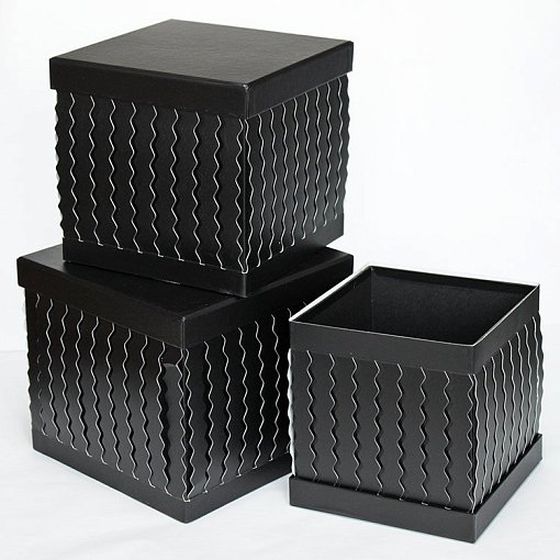 Коробка/набор Квадрат Черный Резной 200*200*180 из 3 шт./ 18 т.м.