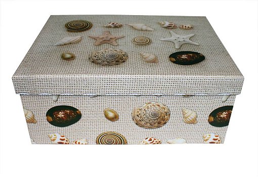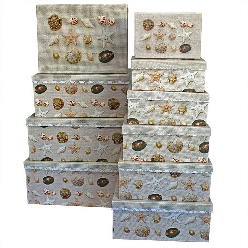 Коробка/набор из 10 шт. Прямоугольник "Ракушки и Звёзды" 37*29*16 4 т.м.