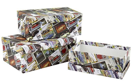 Набор коробок № 74.Прямоугольные Машинки ретро. 3шт" 23см*16см*9,5см