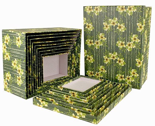 Коробка/набор из 10 шт. Прямоугольник "Цветы на тёмнозеленом" 37*29*16 4 т.м.