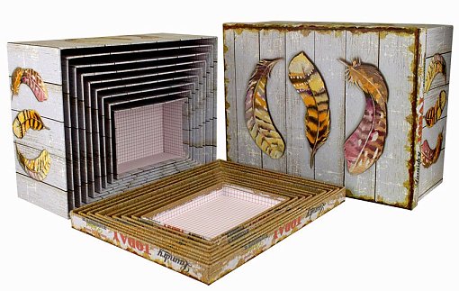 Коробка/набор из 10 шт. Прямоугольник "Пёрышки" 37*29*16 4 т.м.