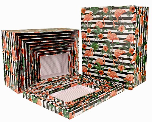 Коробка/набор из 10 шт. Прямоугольник "Фламинго с полосой" 37*29*16 4 т.м.