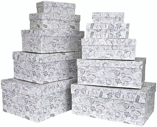 Набор коробок № 10 Прямоугольные глубокие Почтовые штампы10шт 32,5х20х12,5см