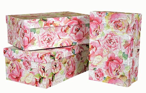 Набор коробок № 74 Прямоугольные Пионы 3шт" 23см*16см*9,5см