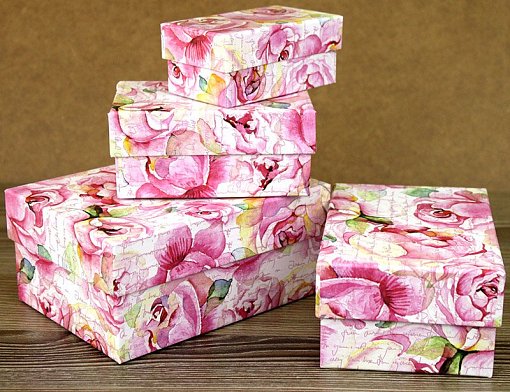 Набор коробок № 6 Пионы Мал. прямоуг. 4шт" 15см*11см*7см