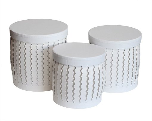 Коробка/набор Цилиндр Белый-Резной 200*200*200 из 3 шт./ 18 т.м.