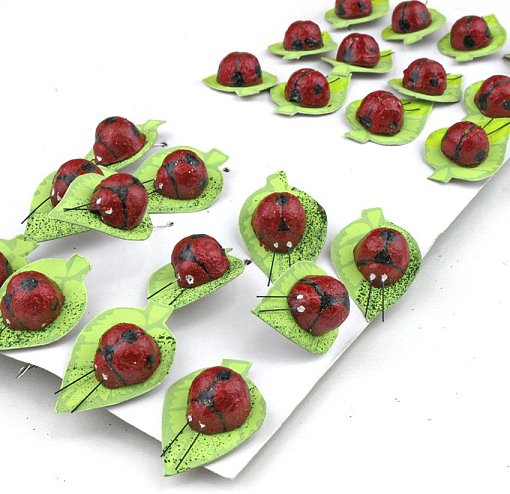Божьи коровки на листочке 3.5см 556 ассорти 24шт/уп 2880 т.м